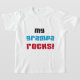 My Grampa Rocks T-shirts, cards, stickers, tote bags, magnets, buttons, and other items with a black, blue, and red text design. These My Grampa Rocks items are a great way to show your love for your special grampa!