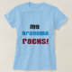 My Grandma Rocks T-shirts, cards, stickers, tote bags, magnets, buttons, and other items with a black, blue, and red text design. These My Grandma Rocks items are a great way to show your love for your special grandma!