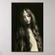 Vintage photograph of a young woman with very very long hair, a serious look on her face as she looks downward and a small metal headband