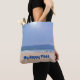 Original photograph of a beach with birds on the sand and surfers in the waves given a graphic illustrative treatment. The words 'My Happy Place' are on the front. These bags are great for carrying groceries, books, bible studies, toys, or use as a beach bag or gym bag; anything you need to carry around! These bags are 16” x 16” with a 28” strap. They have a black laminated lining for sturdy support as well. You can also add text as you like (such as someone’s name) on the back of the bag which is in a complimentary colour of ocean blue or leave as is.