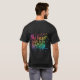 This vibrant t-shirt declares your love for music in a bold and colourful way. The text "My heart beats to the rhythm.." is displayed in a captivating multicolor gradient, each word bursting with a different shade, symbolising the diverse emotions and energy music evokes. The simple black background allows the text to take centre stage, making a powerful statement about your connection to music.