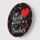 This loving clock is a perfect declaration of affection for anyone whose heart is on the road. Featuring a bold red heart and the sweet sentiment "MY heart BELONGS TO A Trucker," it's an ideal gift for a trucker's spouse, partner, or family member, celebrating the unique bond with a long-haul hero.