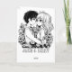A sweet Happy Anniversary card depicting an anime boy and girl couple in blue and red. On back is a colouring page where you can personalise the names. Anniversary card for him or her.