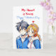 A sweet Happy Valentine's Day card depicting an anime boy and girl couple in blue and red. On back is a colouring page where you can personalise the names. Valentine's Day card for him or her.