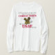 I love this shirt. I had written to the artist asking her if this picture was available on a shirt, and she wrote me back telling me where I could find the shirt. These shirts can be custom made to have a different saying. I loved this saying and went with it. The artist wrote me back later to tell me that she had seen my order go through. How's that for service? Pretty special. It's just as displayed. Perfect!