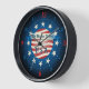 Stars and stripes inspired graphics adorn this beautiful American styled clock face. Customise the type to make it your own home town or state. Perfect for special occasions or a great gift idea.