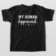 This image shows the text "MY HUMAN. Approved." in bold white letters on a black background. Three paw prints at the bottom suggest that this message is from a pet (likely a dog or cat) expressing approval or affection for its human companion. The design conveys a sense of love and acceptance from the pet's perspective.