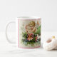 Features a winged cherub flying peacefully among the flowers with a message fully relatable to coffee drinkers.