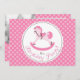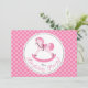 Sweet rocking horse birthday invitation with pink polka dots.