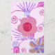 Stylised Flowers: The artwork features a collection of whimsical, stylised flowers that are simplified interpretations, accentuated by swirling lines and bright colours.