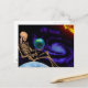 A skeleton sits on the moon holding the earth...my corner of the world.