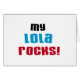 My Lola Rocks T-shirts, cards, stickers, tote bags, magnets, buttons, and other items with a black, blue, and red text design. These My Lola Rocks items are a great way to show your love for your special lola!