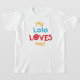 My Lolo Loves Me T-shirts, bodysuits, cards, stickers, mugs, bags, magnets, and more with a colourful blue, red, and yellow text design.
