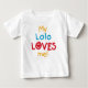 My Lolo Loves Me T-shirts, bodysuits, cards, stickers, mugs, bags, magnets, and more with a colourful blue, red, and yellow text design.