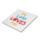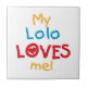 My Lolo Loves Me T-shirts, bodysuits, cards, stickers, mugs, bags, magnets, and more with a colourful blue, red, and yellow text design.