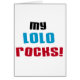 My Lolo Rocks T-shirts, cards, stickers, tote bags, magnets, buttons, and other items with a black, blue, and red text design. These My Lolo Rocks items are a great way to show your love for your special lolo!