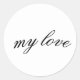 Express your love with this beautiful 'my love' sticker featuring elegant script calligraphy. Perfect for decorating laptops, water bottles, notebooks, planners, phone cases, and more. High-quality glossy finish ensures vibrant colors and lasting durability. Great gift for Valentine's Day, anniversaries, or to show someone special you care. Waterproof and weatherproof for indoor and outdoor use.
