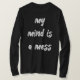 I love this artist. Their designs are cute and whimsical. But I ordered too large a size. I don’t mind as I’m going to use it to sleep in. I’ll probably order this in a short sleeve style to wear in the summer. My family loves my chocolate chip cookies so this design has significance for me. Bright and bold. It was off center but that was my fault as I edited the design. Should have left it alone but was just trying out the editing feature. Great editing system to play around with and change things up a little bit