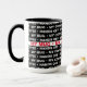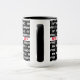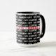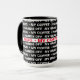 For the serious coffee drinker. This mug has a repeating pattern of text that reads "MY MUG • MY COFFEE • HANDS OFF" The rim and handle come in your choice of 5 colours, shown here in black. You can also customise the black background a colour behind the text.