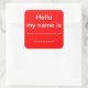 These square stickers are red with "Hello my name is___". These name tags are great for business meetings, gatherings, or employee name tags.