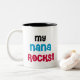 Kids who have the best Nana ever will love this cute black, red, and blue text design with hearts My Nana Rocks on Nana theme T-shirts, mugs, mousepads, magnets, and more.