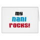 My Nani Rocks T-shirts, cards, stickers, tote bags, magnets, buttons, and other items with a black, blue, and red text design. These My Nani Rocks items are a great way to show your love for your special nani!