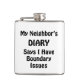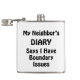 For the sarcasm lover in all of us. Check out this witty “My Neighbour’s Diary Says I Have Boundary Issues” design on apparel and gifts.