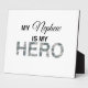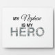 Fully customisable. Has "my nephew is my hero" written in it. The word "hero" is in digital camouflage.