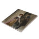 This design features a painting by Edmund Blair Leighton (1852–1922), who was an English painter of historical scenes. It shows a man entering a grand building as a woman enters. She is dressed in fine clothes, including a long flowing dress and fashionable hat, and the man is admiring her appearance. There is clearly some romantic tension between the couple. They may be well known to each other and in the early stages of courtship, or the man may be simply be admiring the woman's beauty in a passing glance. Either way, it is an elegant image of human attraction and romance. The woman is carrying a small black terrier dog in her arm and she looks nonchalantly towards the viewer; she knows her own worth. The gentleman is carrying a long overcoat on his arm. The original artwork was produced in 1894.