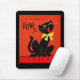 Black cat with yellow bow tie sitting on a fence. Fun retro greeting card illustration. Vintage greeting, It's My Night to Howl!"