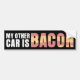 This funny bacon loving bumper sticker is perfect for a gift or for your own car! It doesn't really make sense, but it doesn't have to - it's about bacon! Bacon bacon bacon. Mmmm, sizzling bacon.