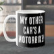 Show them you're a motorcycling fan. This coffee mug has the slogan "My Other Car's a Motorbike!".