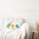 My Peeps Bird Pillow. This whimsical image features 3 cute birds chirping and features hand-drawn style hearts in blue, grey, yellow, and pink.