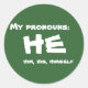 Let people know that the right pronouns to use for you are he, him, his, and himself. (Feel free to change the colours by customising the product. You can change the background colour by clicking on "edit" and then "background". I chose green because it's a gender-neutral colour and in the genderqueer and neutrois flags.)