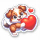 A cute puppy holding a heart
