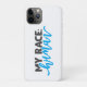 Social justice themed design that celebrates inclusion and diversity. After all, we are HUMAN.   Features "My Race:"  in charcoal grey text with "human" in bright blue modern script.