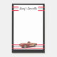 For classic car lovers and Corvette collectors, this one is for you. A white writing area, with a black border, this design has a red and black striped border, at the top and bottom. On the bottom there is a photo of a 1957 red Corvette.