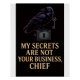 Add a touch of mystery and attitude to your space with this bold gothic poster. Featuring a black raven perched on a lock, with a dangling key and the striking phrase “My Secrets Are Not Your Business, Chief.” Perfect wall art for fans of dark aesthetics, witchy vibes, and gothic home decor.