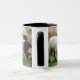 This faith mug features my original photograph of sheep grazing in a pasture. I processed my photograph with an oil pastel painterly style for an artsy flair. The handle and inside of the cup are black to complement the artwork. A bible verse from John 10:27 is on the mug as well.