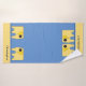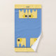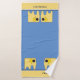 This thick, velvety towel set features a cute cartoon style sunny yellow elephant on a trendy blue background w/ thin black & white borders above a wide yellow band at bottom. Bath size is ready to personalise w/ your (or your kid's) name, hand towel has space for a monogram.