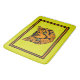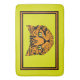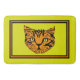 This cushy, non-slip bath mat features a pair of cute cartoon style, tiger cub's face in orange & black tiger on a bright puce (yellow-green) background w/ alternating black & orange borders with a wide puce outer border.