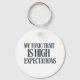 A bold, minimalist text design featuring the humourous and self-aware phrase, "MY TOXIC TRAIT IS HIGH EXPECTATIONS." The text is set in a strong, serious serif font, creating a contrast with the lighthearted, trending social media concept. This design appeals to those who relate to having demanding standards for themselves and others.