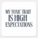 A bold, minimalist text design featuring the humourous and self-aware phrase, "MY TOXIC TRAIT IS HIGH EXPECTATIONS." The text is set in a strong, serious serif font, creating a contrast with the lighthearted, trending social media concept. This design appeals to those who relate to having demanding standards for themselves and others.