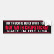 BLACK BUMPER STICKER WITH RED AND WHITE LETTERING. THE CAPTION SAYS: MY TRUCK IS BUILD WITH TOOLS,NOT WITH CHOPSTICKS! MADE IN THE USA