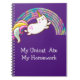 Notebook for girls . It comes with a funny quote " My Uni cat ate my homework . It features a funny cat disguised as unicorn and is flying over a psychedelic rainbow . Silly design to jazz up boring school days .