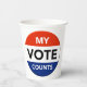 There is no more important job in our democracy than that of the voter. If you’ve ever had any doubt that your vote counts, just take a look at so many of the recent squeaker elections in our divided politics. In some cases just a handful of votes made the difference in statewide, primary and general election offices. If supporters of the opposing candidate had shown up at the polls, the results would have been different. It’s that simple. Show the world that “My Vote Counts” with this election button design, because it really does.