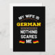 My Wife Is German Nothing Scares Me - This Alemania heritage design is ideal for a husband or hubby who is proud of his wife's nationality who is a citizen of the German Republic. Great idea for husbands who are honored to have a wife from Germany.