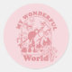Check out this cute retro design featuring a phrase about loving my wonderful world.