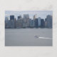 Skyline of New York City in the background as a boat zooms by in the foreground. Beautiful Photograph taken by Amy Marie. Copyright Amy Marie.