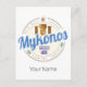 Mykonos in Greece vintage olive souvenir. Mykonos Cyclades Islands design for travel and holiday in the Aegean Sea. Greece Mykonos design for beach vacation.